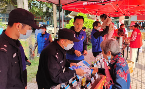 活動現場,黨員和志愿者們精神飽滿,分工協作,互相配合,搭建起禁毒宣傳、垃圾分類、便民理發(fā)、健康檢查等展位,為轄區(qū)居民提供各類便民服務。